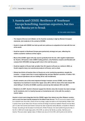 3. Austria and CESEE: Resilience of Southeast Europe benefiting Austrian exporters, but ties with Russia yet to break