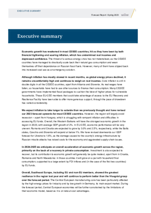 Although economic activity has weakened considerably compared to last year, most of the economies of CESEE seem to have largely digested the economic shock caused by the Russian invasion of Ukraine and its fallout. All CESEE economies except Hungary and Russia will post positive full-year growth in 2023. From 2024 the recovery should continue to strengthen across the region, although monetary tightening and the uncertain duration and outcome of the war are downside risks to the outlook.